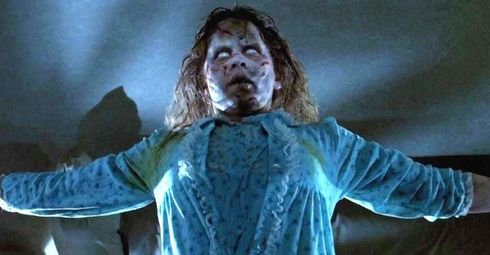 The Exorcist tells the story of Regan, a 12-year-old girl possessed by a demon. Her mother seeks help from two priests who perform a violent exorcism in an upstairs bedroom, featuring famous scenes like her head spinning 360 degrees and her floating above the bed.