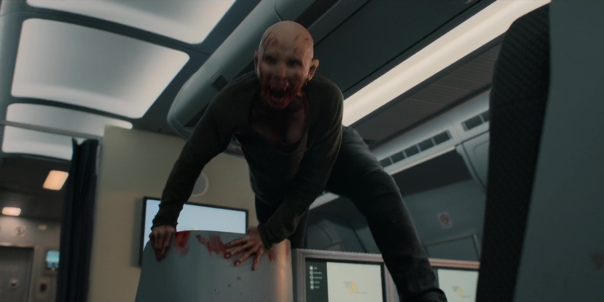 • Claustrophobic Set Pieces: The setting of a transatlantic airliner is utilized to maximum effect. The narrow aisles, the dark cargo holds, and the cockpit become tactical battlegrounds. The inability to escape heightens the tension, as the infection begins to spread within a confined, inescapable metal tube.